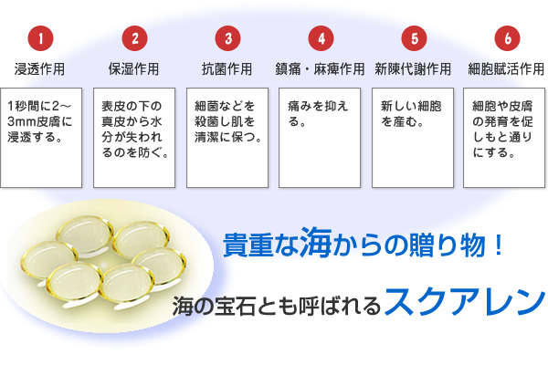 この時に発生する酸素が、細胞の新陳代謝を活発にさせ、内臓を元気にしてくれています。また、スクアレンは、副腎皮質ホルモンを合成するコレステロールの原料となることがわかっています。
